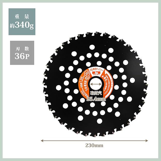 【仕様】外径:230㎜/刃数:36P/取付穴:25.4㎜