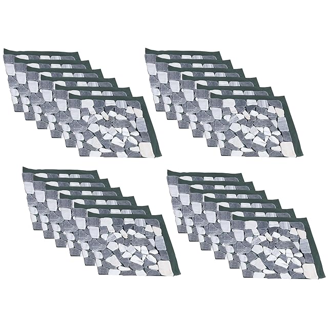 リビングアウト(Living Out) 天然石マット24枚セット 防草シート付き 敷くだけ - ノワール 本体: 奥行30.5cm 本体: 高さ1cm 本体: 幅30.5cm