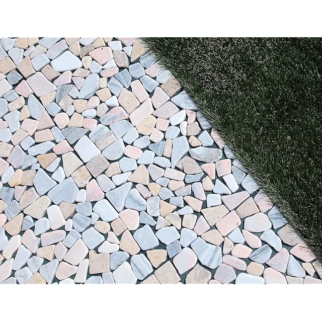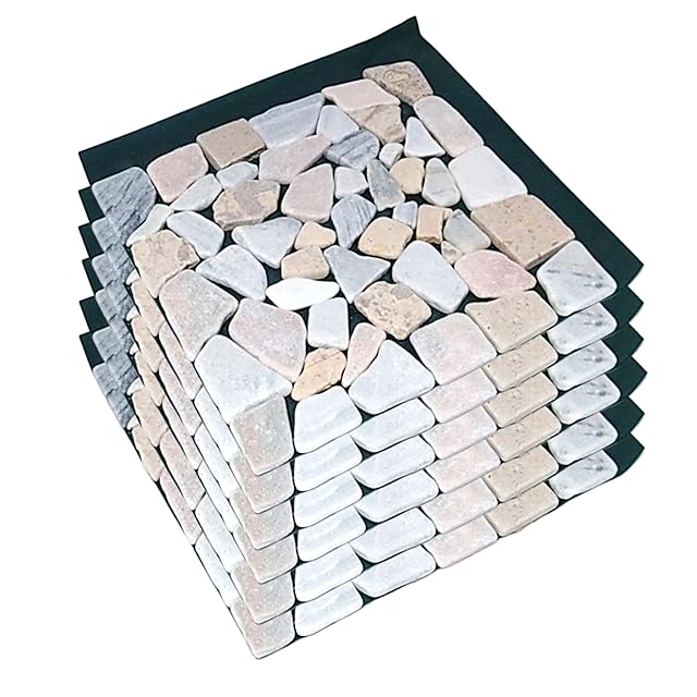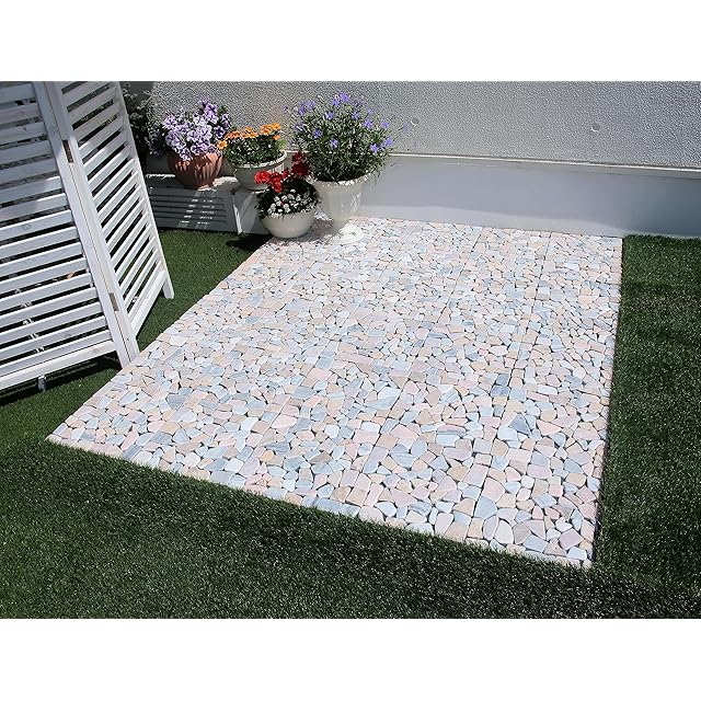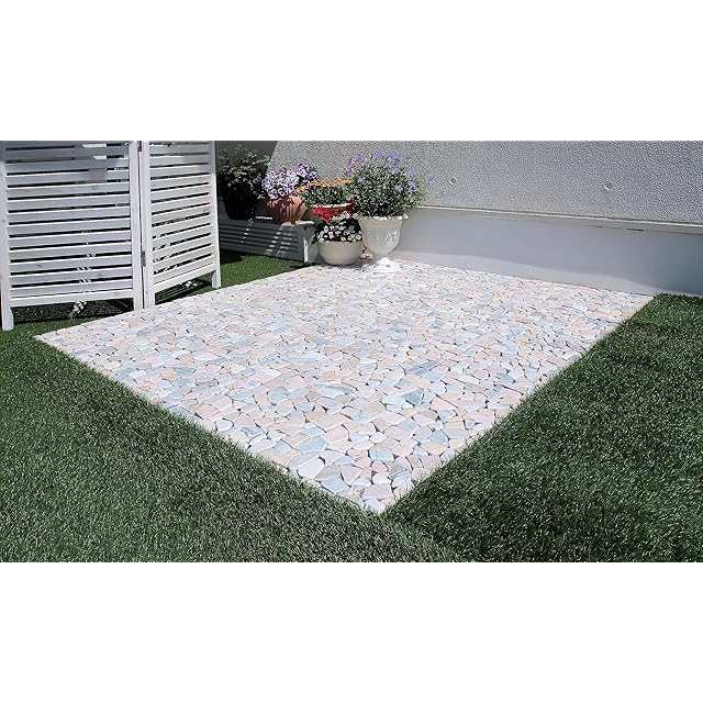 リビングアウト(Living Out) 天然石マット ブラウンミックス 本体: 奥行30.5cm 高さ1cm 幅30.5cm 6枚セット 防草シート付 敷くだけ 大理石 カット可能 正方形 | emishop315
