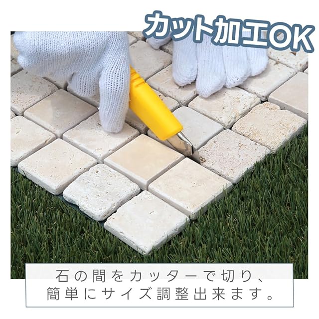 石の間をカットすることでお好きな形にアレンジできます。正方形では形が合わない箇所でも簡単に設置が可能です。