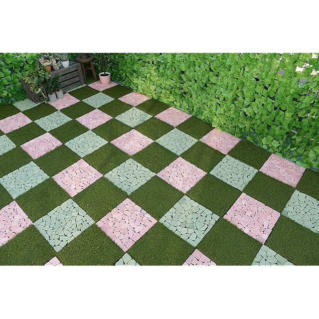 【雑草防止用シート付】日光を遮りつつが通る仕様なため、お庭の雑草が育ちにくい構造に。敷くだけで防草効果もございます。また、プラスチック製のジョイント式ではございませんので、若干の凹凸があっても地面に沿って敷く事が出来ます。