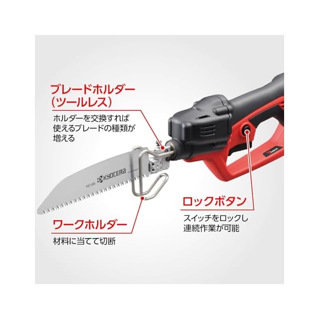 商品名:京セラ(Kyocera) 旧リョービ 電気のこぎりキット 工具なしでブレード交換可能 ASK-1010KT 618403B 【ブレードと収納ケースがセットされた庭木の剪定やDIY木工に便利な万能のこぎり】 切断能力 (庭木)径45mm・(木材)厚さ40mm・(軟鋼板)厚さ3.5mm