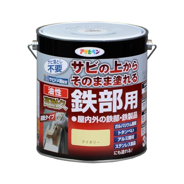 商品名:アサヒペン 塗料 ペンキ 油性高耐久鉄部用 3L アイボリー 油性 サビの上からそのまま塗れる ツヤあり 1回塗り 高密着性 耐候性 日本製