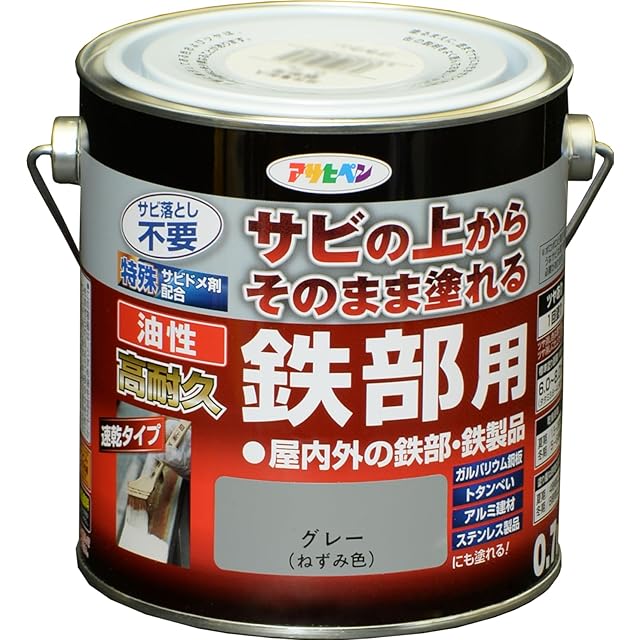 商品名:アサヒペン 塗料 ペンキ 油性高耐久鉄部用 0.7L グレー 油性 サビの上からそのまま塗れる ツヤあり 1回塗り 高密着性 耐候性 日本製