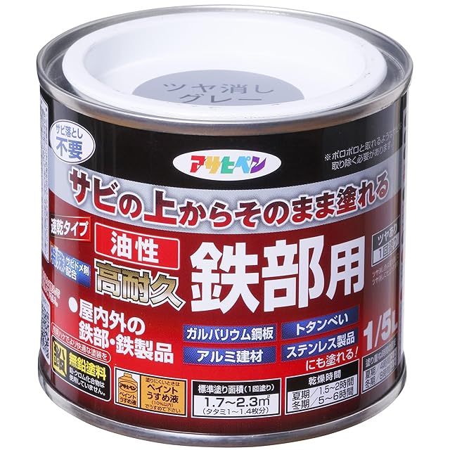 商品名:アサヒペン 塗料 ペンキ 油性高耐久鉄部用 1/5L ツヤ消しグレー 油性 サビの上からそのまま塗れる 艶消し 1回塗り 高密着性 耐候性 日本製