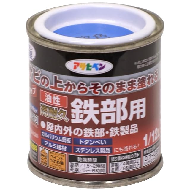 商品名:アサヒペン 塗料 ペンキ 油性高耐久鉄部用 1/12L 空色 油性 サビの上からそのまま塗れる ツヤあり 1回塗り 高密着性 耐候性 日本製