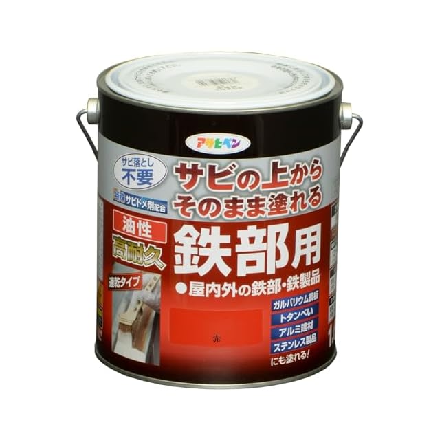商品名:アサヒペン 塗料 ペンキ 油性高耐久鉄部用 1.6L 赤 油性 サビの上からそのまま塗れる ツヤあり 1回塗り 高密着性 耐候性 日本製