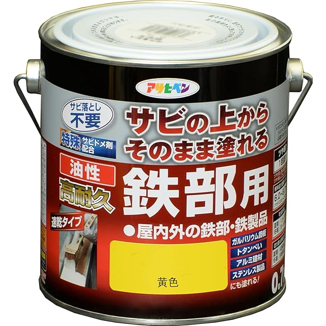 商品名:アサヒペン 塗料 ペンキ 油性高耐久鉄部用 0.7L 黄色 油性 サビの上からそのまま塗れる ツヤあり 1回塗り 高密着性 耐候性 日本製