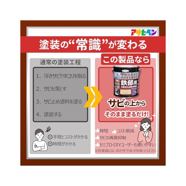 特殊防錆剤の配合により、サビを落とさずサビの上から直接塗れます。