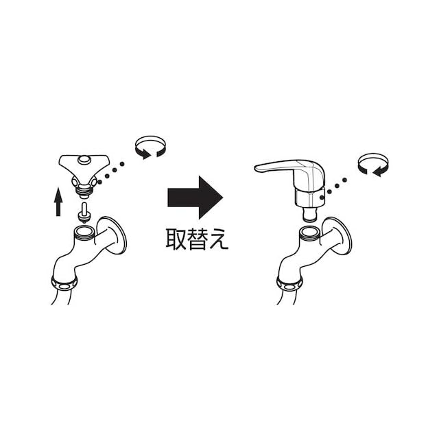 【取付方ツーバルブ混合栓の場合】1、止水栓を止めて作業してください。2、ハンドルのキャップ、ネジを外し、ハンドル部を抜き取ります。上部ナットを(パッキン押さえ)をスパナなどでまわし、スピンドルをはずします。単水栓内部にケレップが入っている場合はピンセット等で取り出します。3、本体内の掃除をします。4、本品を取り付けます。2箇所にパッキンが入っていることを確認し、単水栓本体に差し込み、袋ナットを締めつけます。その際、本品の故障につながるため、締め付けすぎないように注意してください。5、ガタツキ、水モレをチェックします。ガタツキの確認後止水栓を開き、水モレが無いかチェックしてください。水モレがある場合、初めからやり直してください。