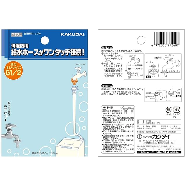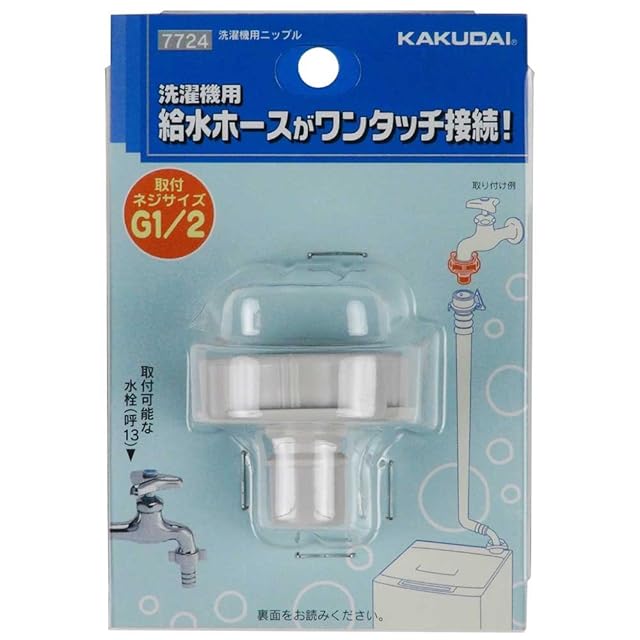 商品名:カクダイ 洗濯機用 取替簡単ニップル 呼13カップリング付き横水栓用 給水ホースをワンタッチ接続 樹脂製 7724