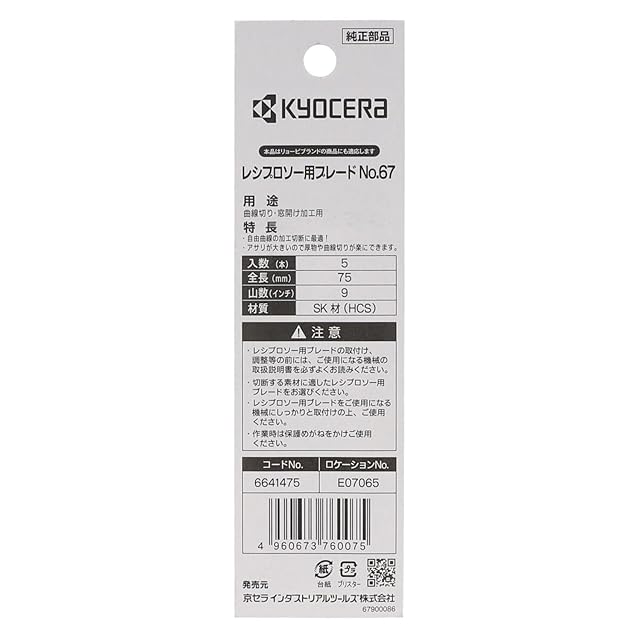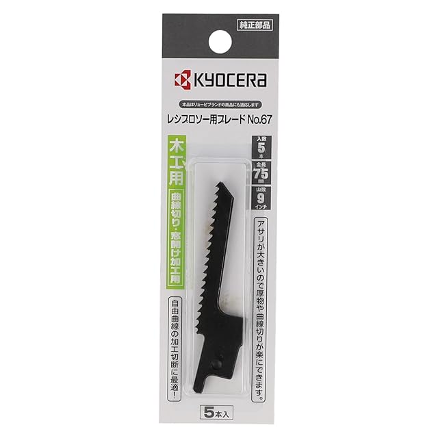 商品名:京セラ(Kyocera) 旧リョービ レシプロソー刃 木工・合成樹脂用 木工曲線・窓開け加工用 75mm 5本組 No.67 6641475