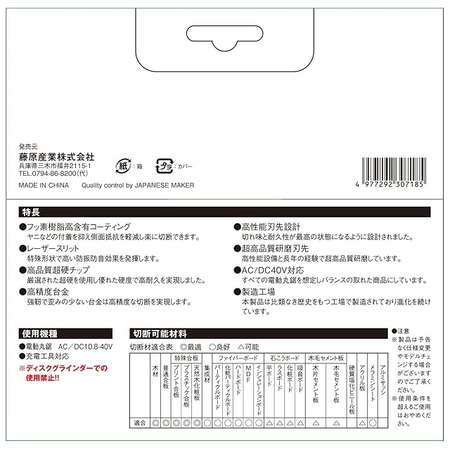 商品名:SK11(エスケー11) くろプラス 木工用チップソー 165×1.5×90P