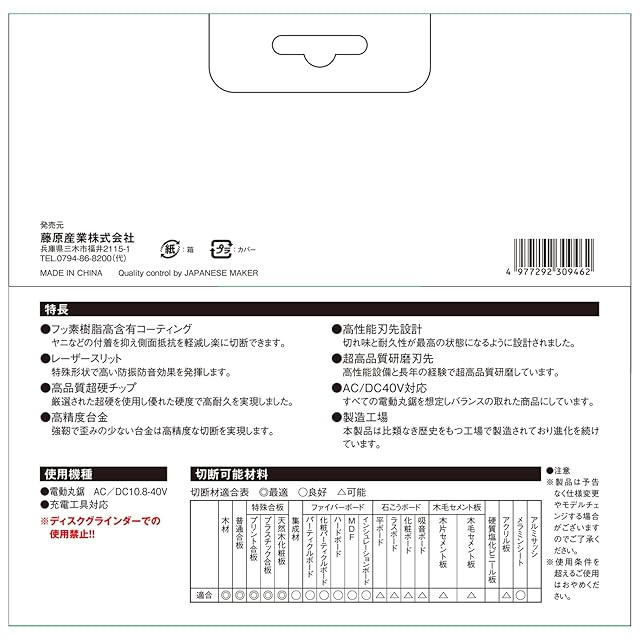 商品名:SK11(エスケー11) くろプラス 木工用チップソー 190×1.5×52P
