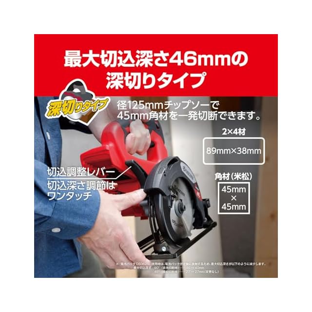 商品タイプ:18V充電式 ノコ刃外径125mm 最大切込深さ46mm