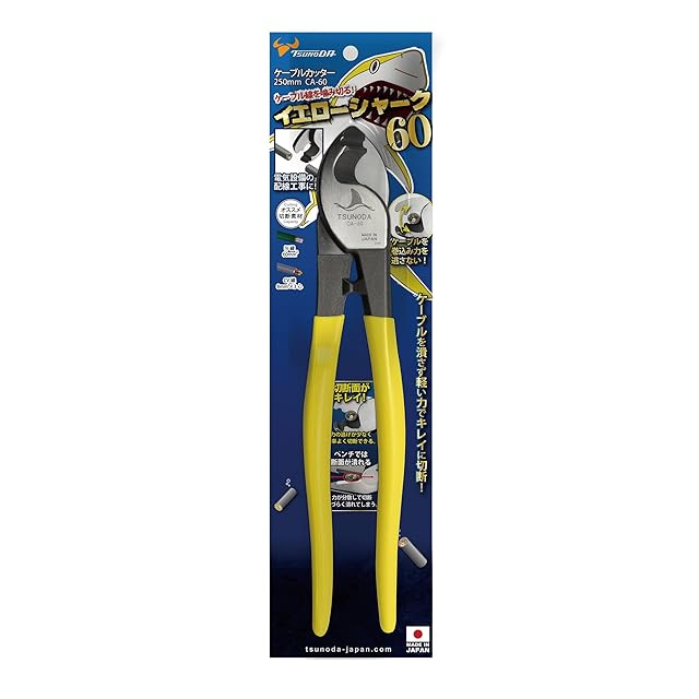 商品名:ツノダ(Tsunoda) ケーブルカッター イエローシャーク60 銅線専用 IV線 60sqまで 電気工事 250mm CA-60