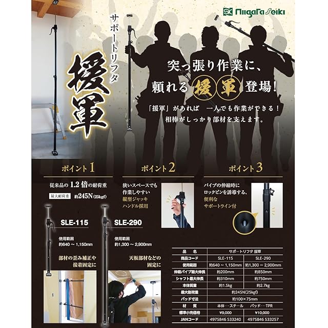 商品名:新潟精機(Niigataseiki) SK サポートリフター 援軍 64-115cm SLE-115 最大耐荷重:245N(25kgf)