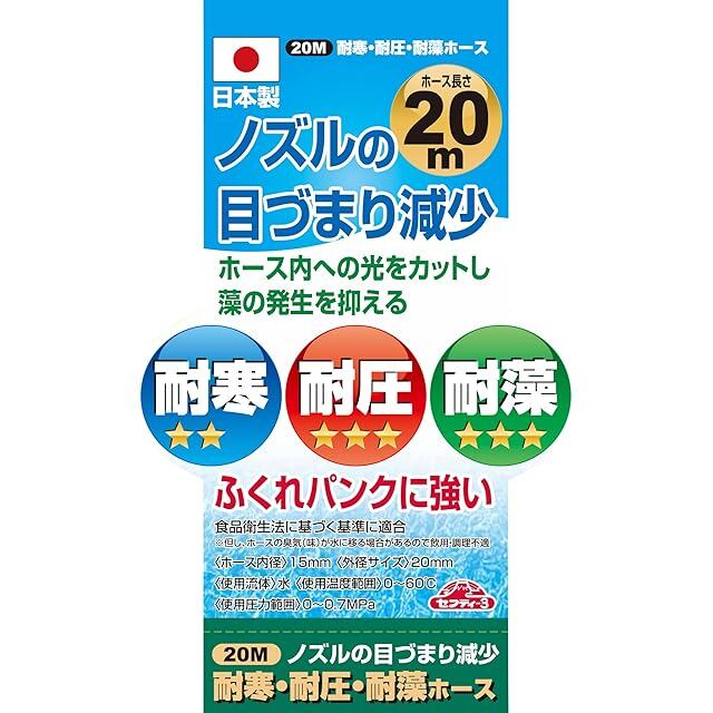 商品名:セフティー3(Safety-3) 園芸用 耐寒・耐圧・耐藻ホース 20m TTTH-1520 日本製
