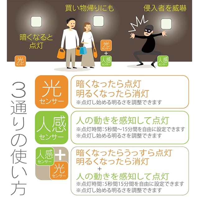 商品名:リーベックス(Revex) LED センサー ライト コンセント式 防雨型人感センサー 光センサー 防犯 カベピカ スクエア SLK900