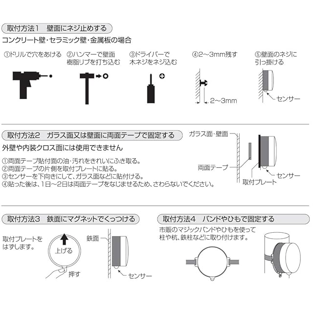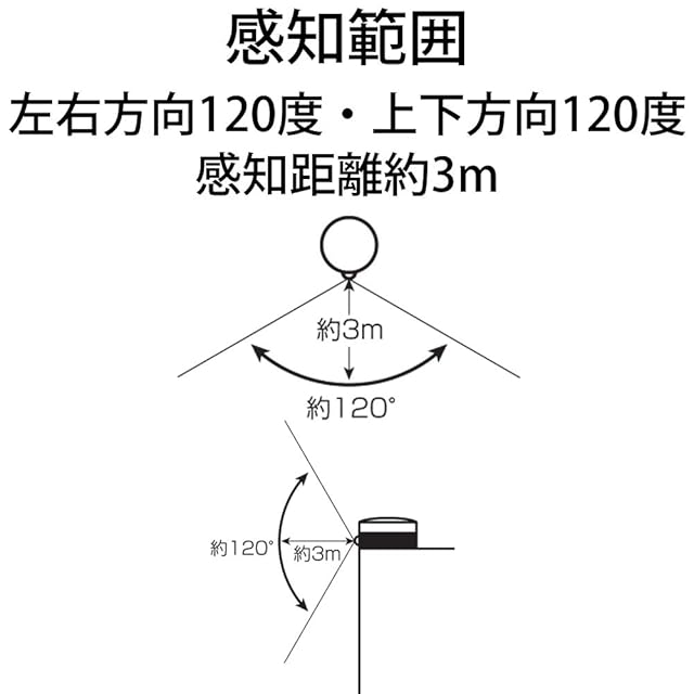 使用電池:単3形アルカリ電池×3本 (別売)、電池寿命:1日10回(15秒/1回)点灯して約10ヶ月