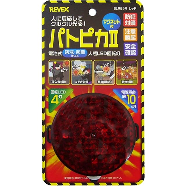 商品名:リーベックス(Revex) LED センサー ライト 電池式 防雨型人感センサー 防犯 害獣対策 人に反応してクルクル光るLED パトピカ2 レッド SLR85R