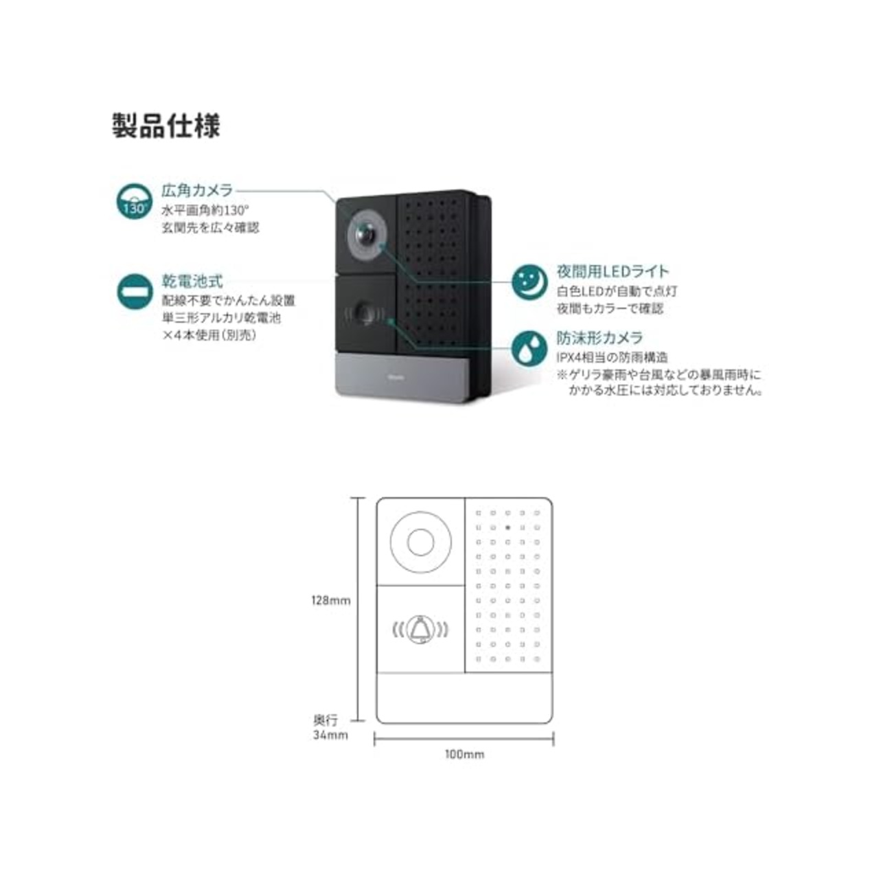 商品名:エルパ (ELPA) 増設玄関カメラ インターホン DECT方式 乾電池式 広角カメラ ワイヤレス DHS-C22
