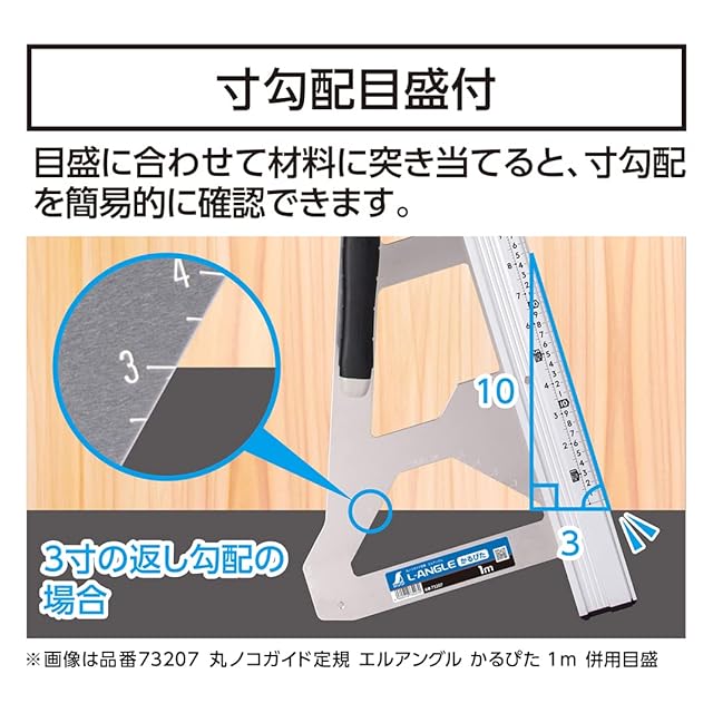 目盛に合わせて材料に付き当てると、寸勾配を簡易的に確認できます(1寸~5寸勾配)。