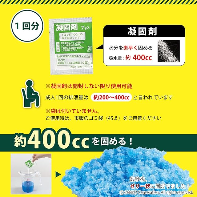 【凝固剤:7g、30回分セット】1袋で約400ccの水分を固めます。開封しない限り使用可能(高温多湿の場所では保管しないでください)