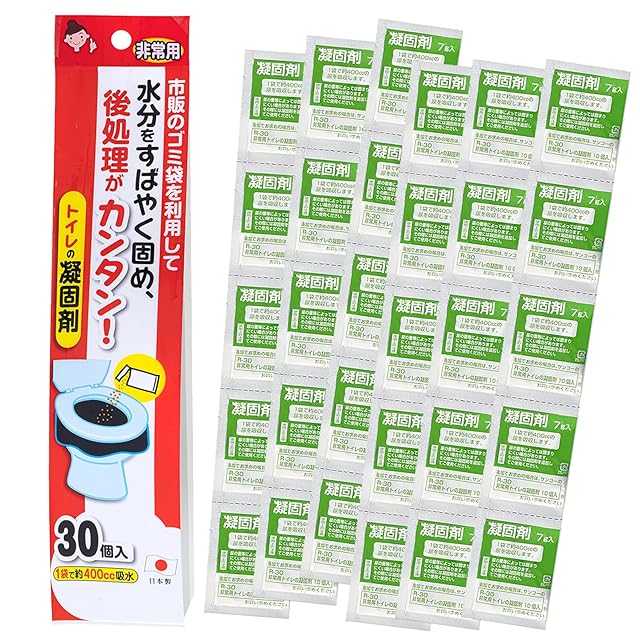 水分を素早く固めて後処理が簡単、凝固剤30個入です。ご使用の際は、市販のゴミ袋(45リットル)をご用意ください。