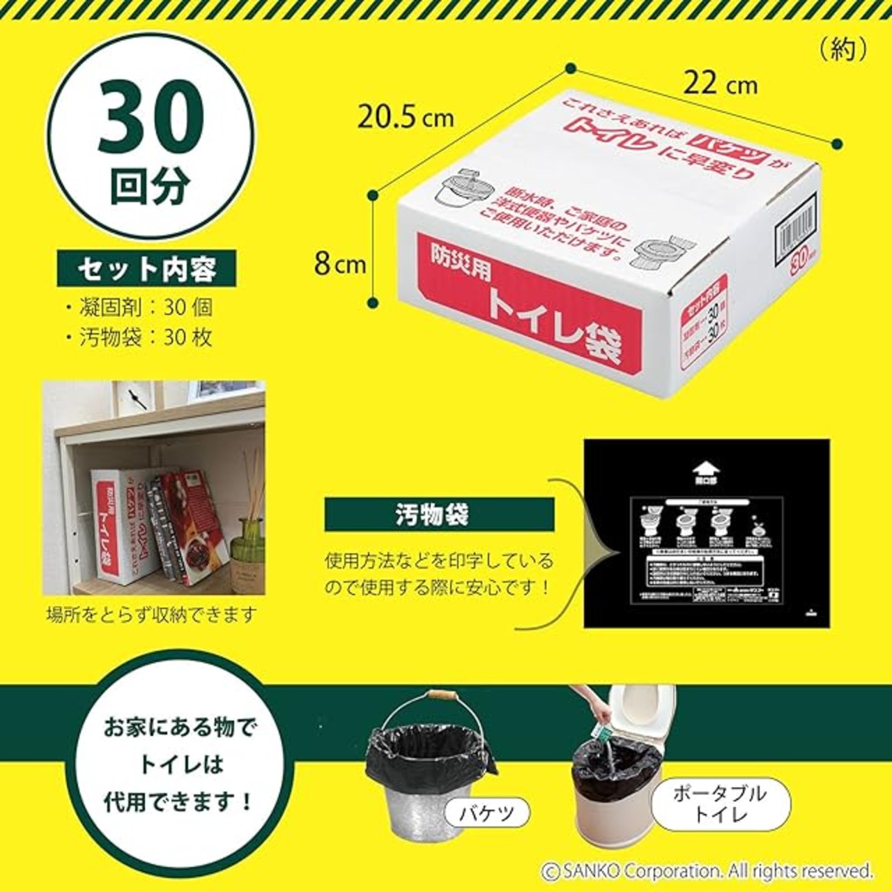 商品名:Sanko サンコー 非常用 災害用 簡易トイレ 旅行 キャンプ 備蓄 携帯 防災 日本製 取替用【排泄処理袋 凝固剤 30回分】長期保存 R-47