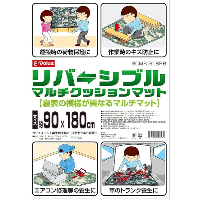 商品名:イーバリュー(E-Value) リバーシブルマルチクッションマット 迷彩柄 約90×180cm 作業時の養生に SCMR-918RB 色指定不可(アソート品)