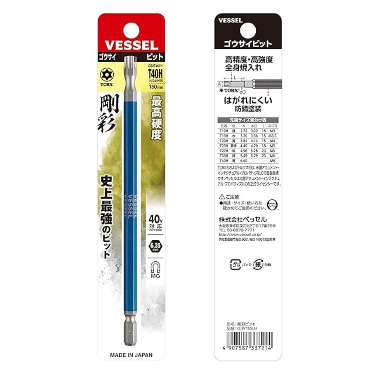 商品名:ベッセル(VESSEL) 片頭トルクス 剛彩ビット ロングタイプ T40H×150 1本 GSVT40LH