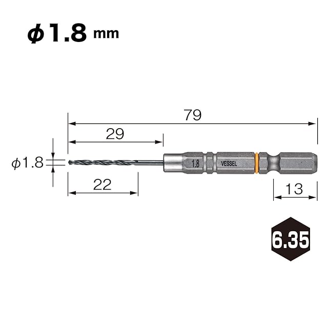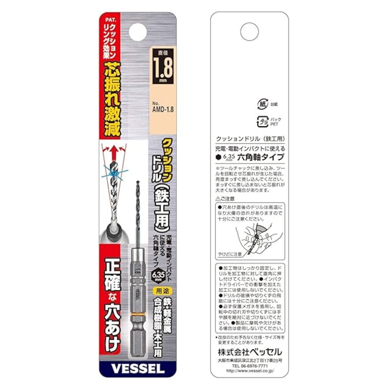 商品名:ベッセル(VESSEL) クッションドリル<鉄工用> ドリルビット1.8mm AMD-1.8 (金属・金工)