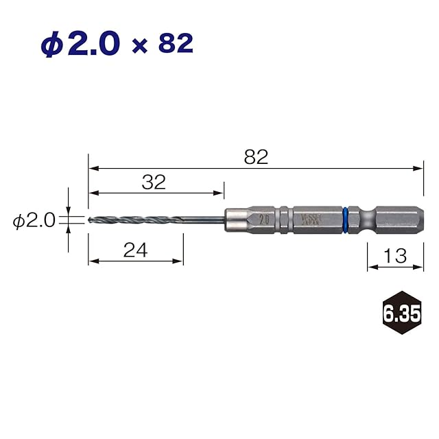 セット内容:φ2×82mm…3本 刃先部:高硬度HSS(ハイス鋼) 本体:特殊鋼 クッションリング:青 日本製
