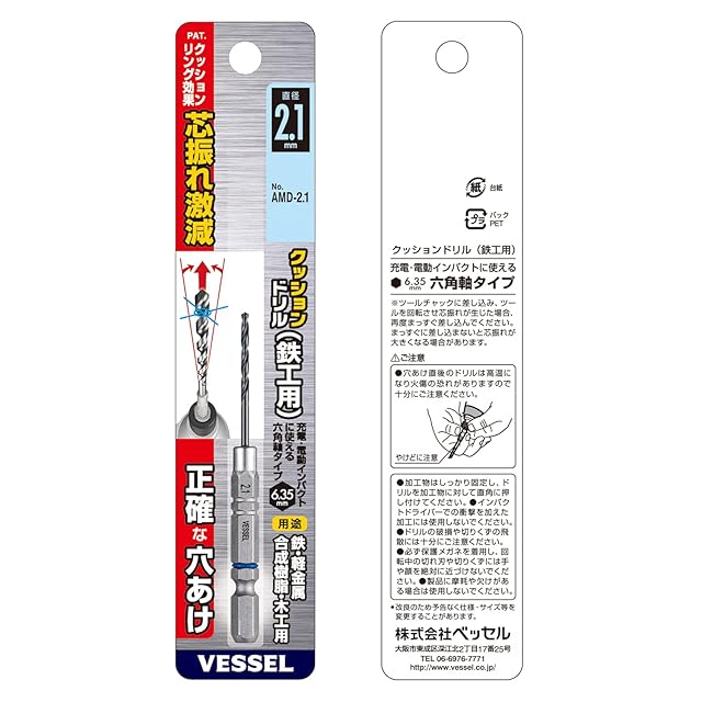 商品名:ベッセル(VESSEL) クッションドリル<鉄工用> ドリルビット2.1mm AMD-2.1 (金属・金工)