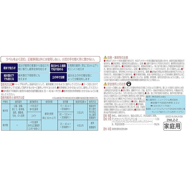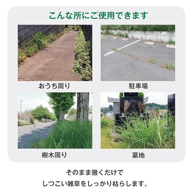 有効成分が雑草の茎葉から吸収され、根まで行き渡り枯れムラが少ない除草剤です。
