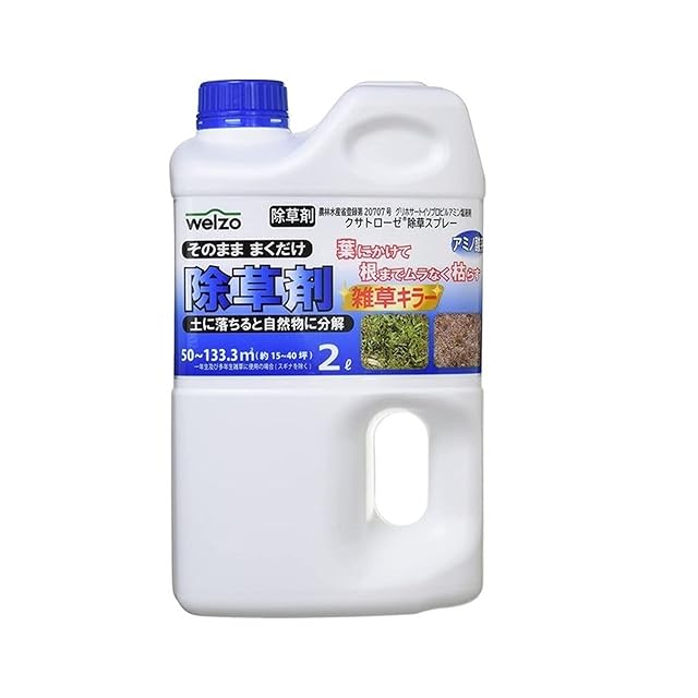 商品名:ウェルゾ(Welzo) 除草剤シャワー 2L【そのまま撒くだけ】【50~133.3㎡用】【土に落ちると自然物に分解】【アミノ酸系】家庭の庭 墓地 駐車場 雑草 除草 液体