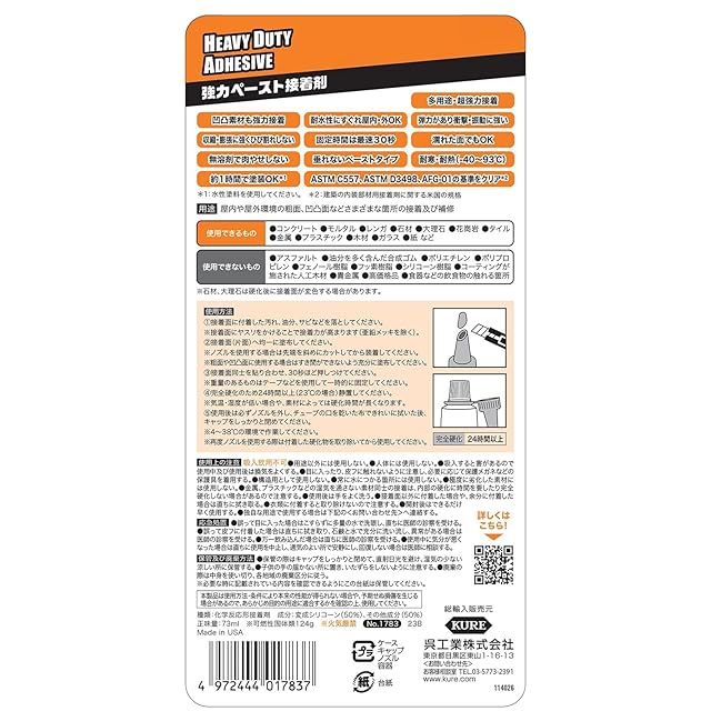 商品名:KURE(呉工業) ゴリラ 強力ペースト接着剤 73ml 強力多用途 弾性接着剤 1783