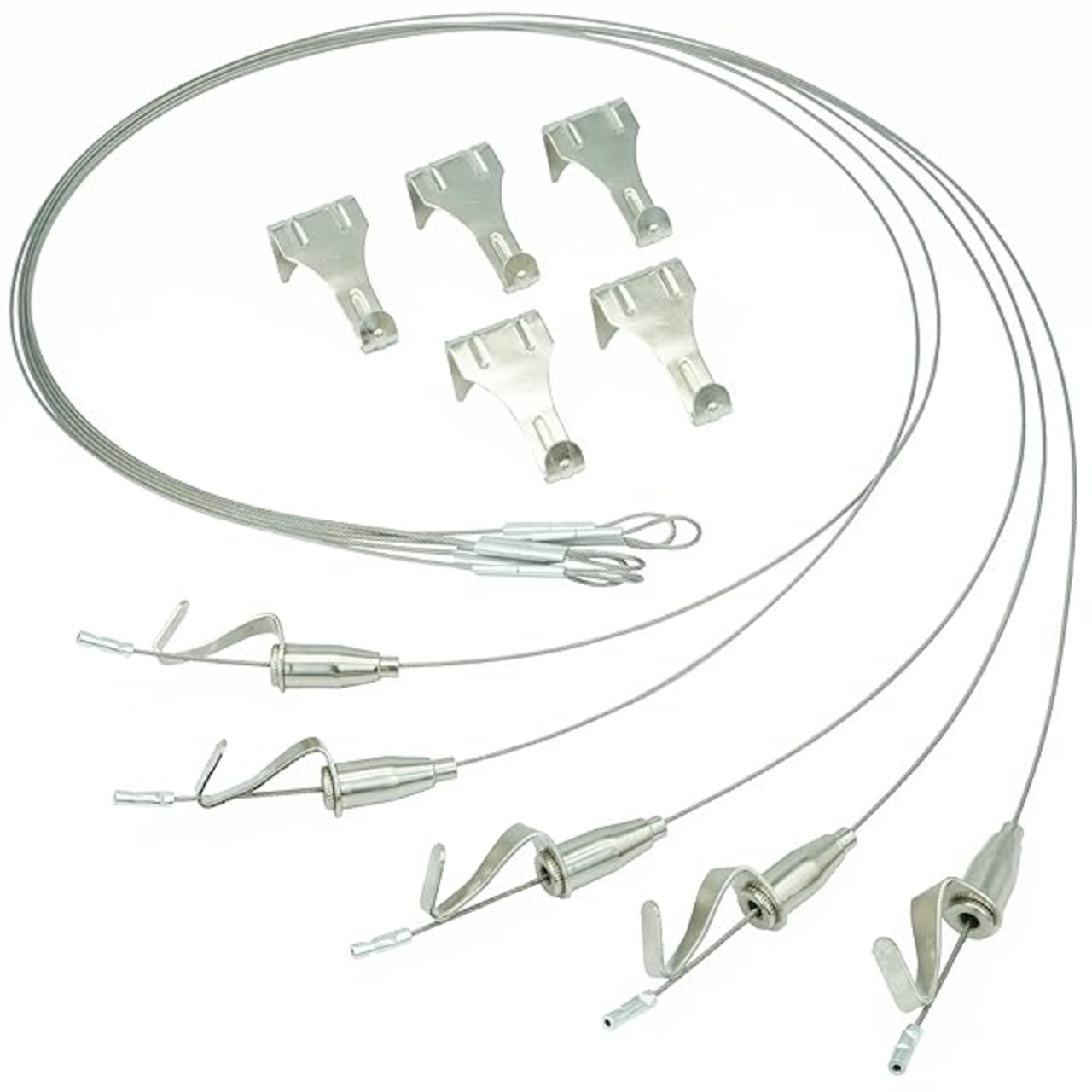 商品名:[ネセクト] ピクチャーレールワイヤーセット ステンレス製 スライド式フック高さ調整可能 国内強度試験済 (1.0m ワイヤー5本 セット)