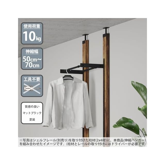 商品名:平安伸銅工業 LABRICO 棚柱 棚受け 伸縮ハンガー アイアン 500 伸縮幅50~70cm シェルフレール対応 マットブラック IXK-536