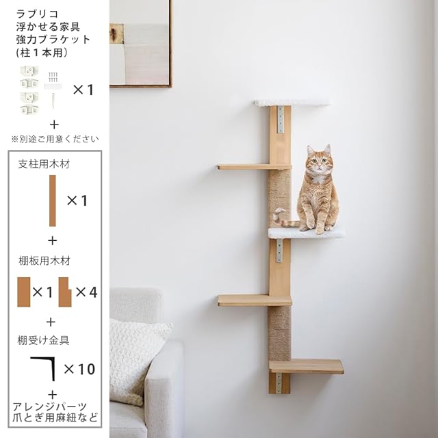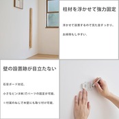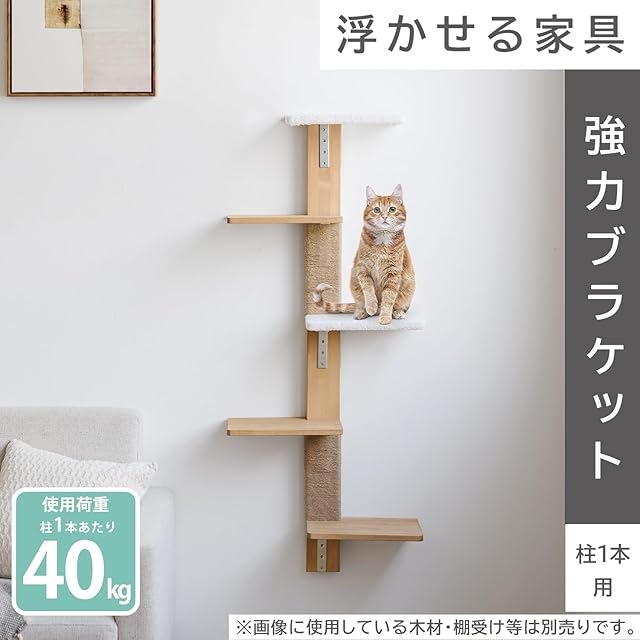 柱1本あたりの使用荷重40kgの強力固定で、重い家具やTVも浮かせることができる。動荷重にも強く、キャットステップや自転車ハンガーにも使用可能。