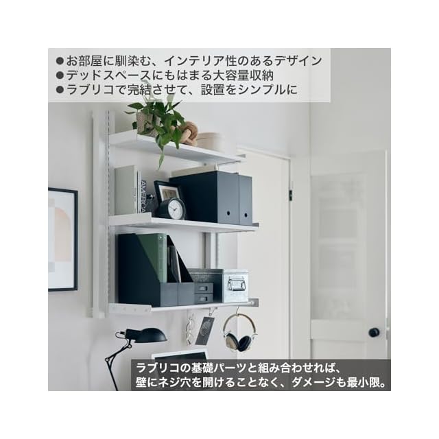 ラブリコの基礎パーツ《2×4アジャスター》や《浮かせる家具ブラケット》と組み合わせれば、壁にネジ穴を開けることなくダメージを最小限にして設置できます。
