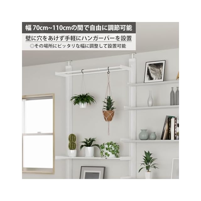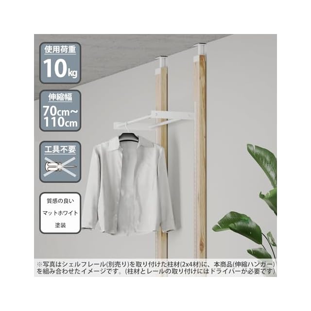 商品名:平安伸銅工業 LABRICO 棚柱 棚受け 伸縮ハンガー アイアン 700 伸縮幅70~110cm シェルフレール対応 マットホワイト IXO-537