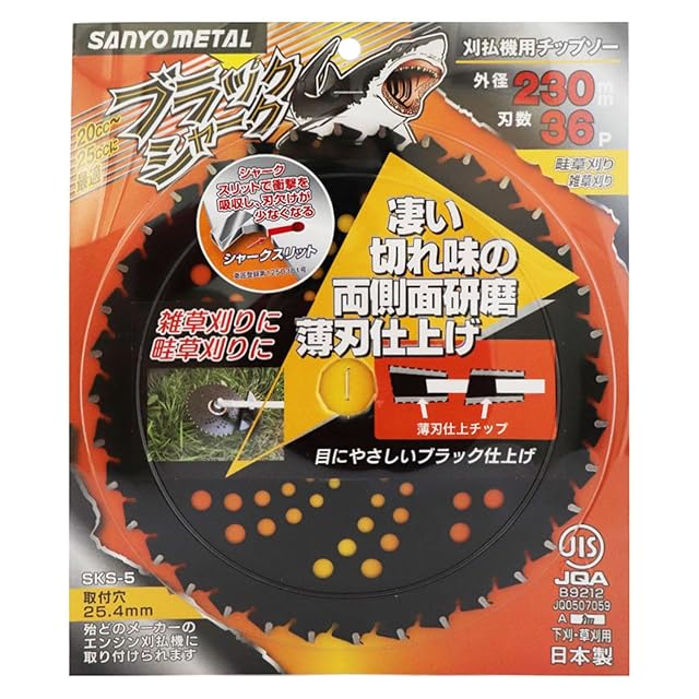 商品名:三陽金属(Sanyo Metal) 日本製 草刈機用チップソー ブラックシャーク 両側刃 230mm 36P 雑草刈り 畦草刈り 草刈り 除草