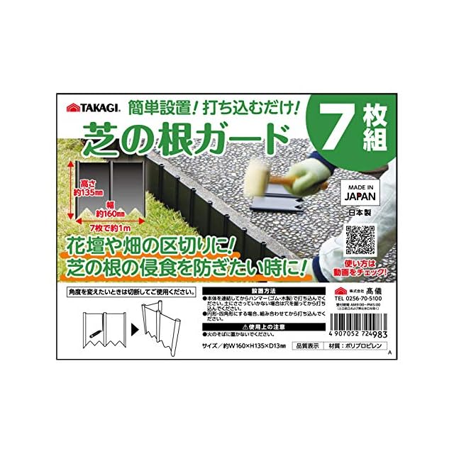 商品名:高儀(Takagi) 【燕三条ブランド】 芝の根ガード 7枚組 花壇や畑の区切りに 簡単設置 160×135×13mm 日本製