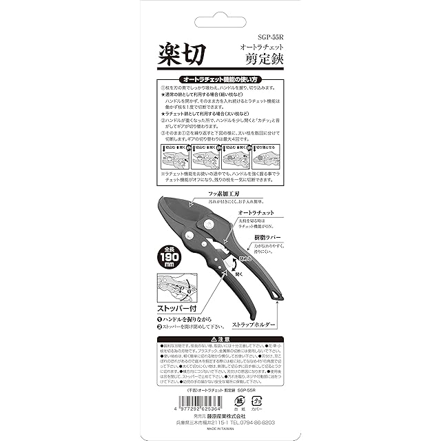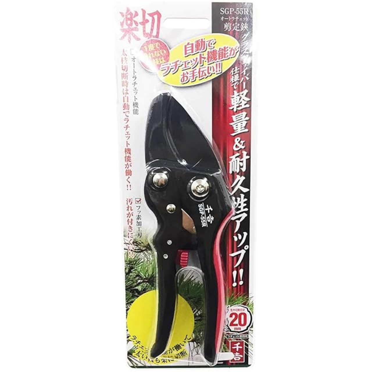 商品名:千吉 オートラチェット剪定鋏 生木切断20mmまで(ラチェット使用時) SGP-55R