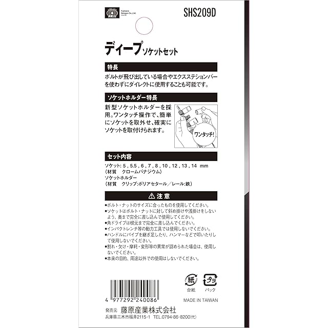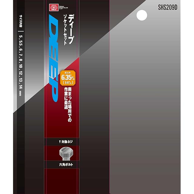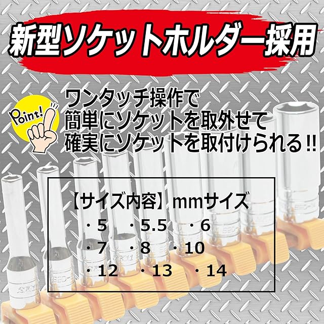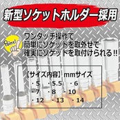 特徴:差込角6.35mmミリサイズ対応、ディープソケット9個組セット