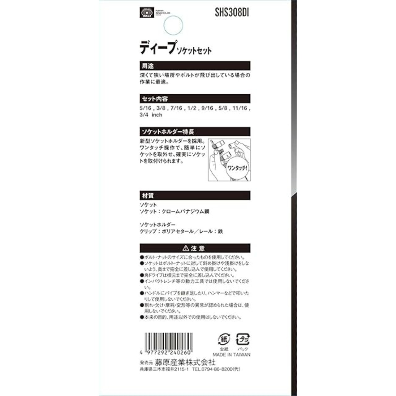 セット内容:5/16・3/8・7/16・1/2・9/16・5/8・11/16・3/4インチ