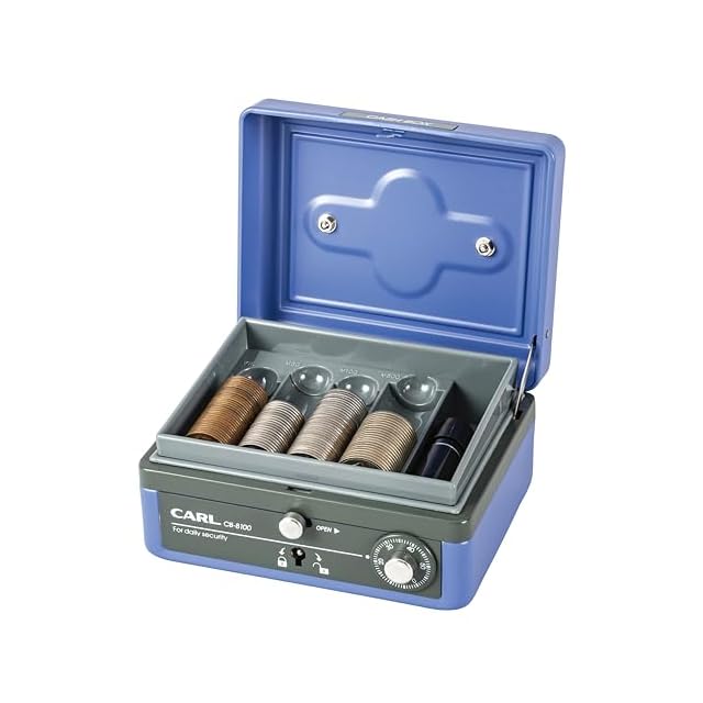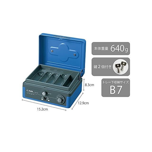 商品名:カール事務器 手提げ金庫 小型 キャッシュボックス B7 ブルー CB-8100-B