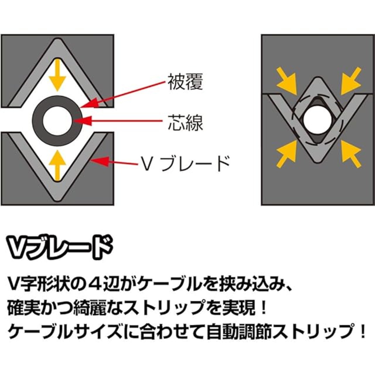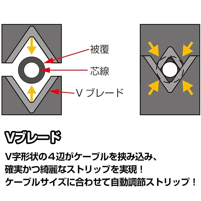 電線サイズを気にせず自動でストリップ可能です。